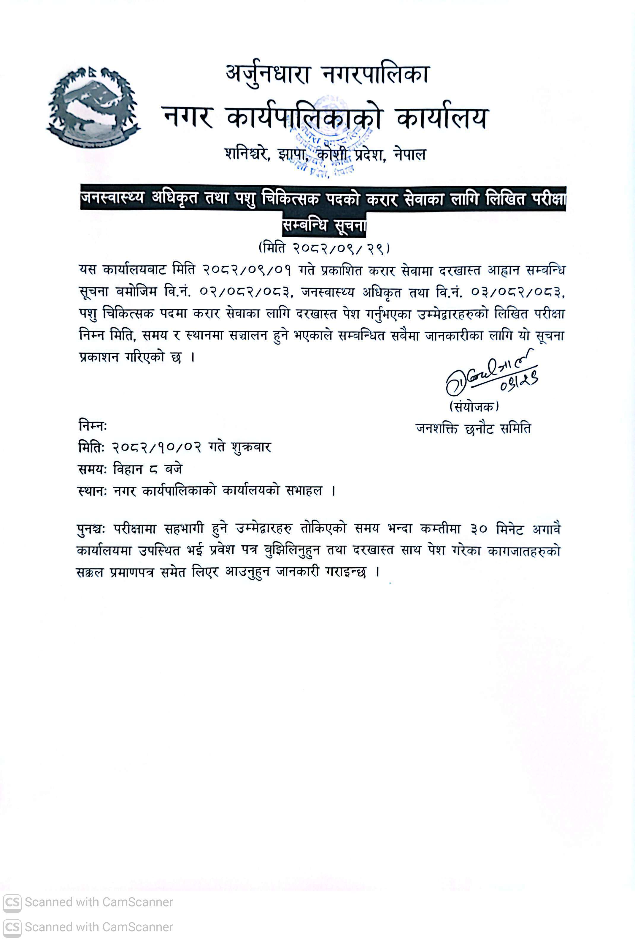 पशु चिकित्सक तथा जनस्वास्थ्य अधिकृत पदको लिखित परीक्षा सम्बन्धी सुचना