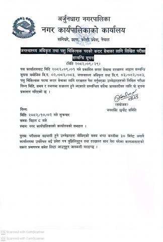 अर्जुनधारा नगरपालिकाको सूचना ।