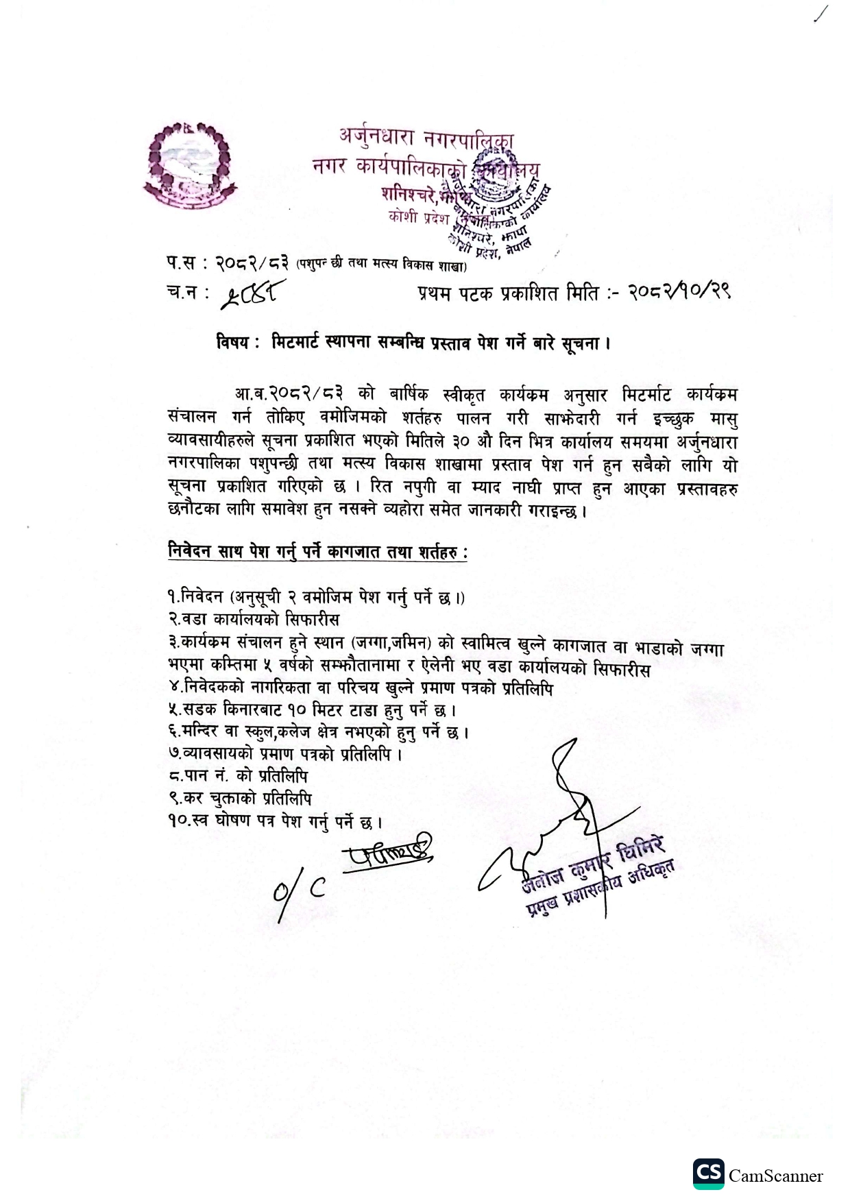 मिटमार्ट स्थापना सम्बन्धि प्रस्ताव पेश गर्ने बारे सूचना ।