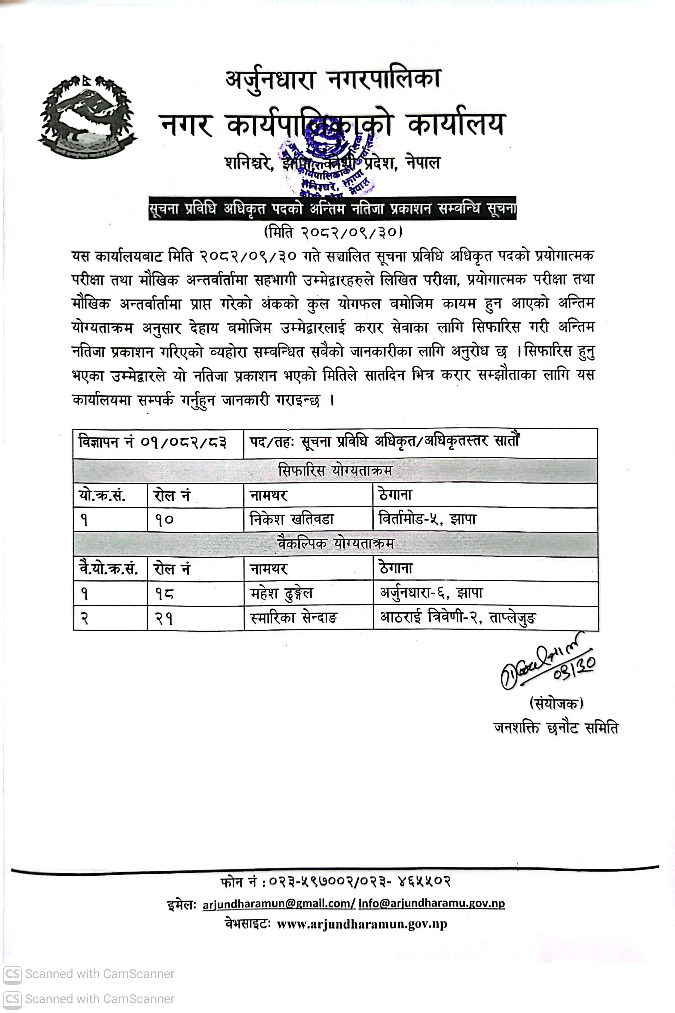 सुचना प्रविधि अधिकृत पदको अन्तिम नतिजा प्रकाशन सम्बन्धि सुचना