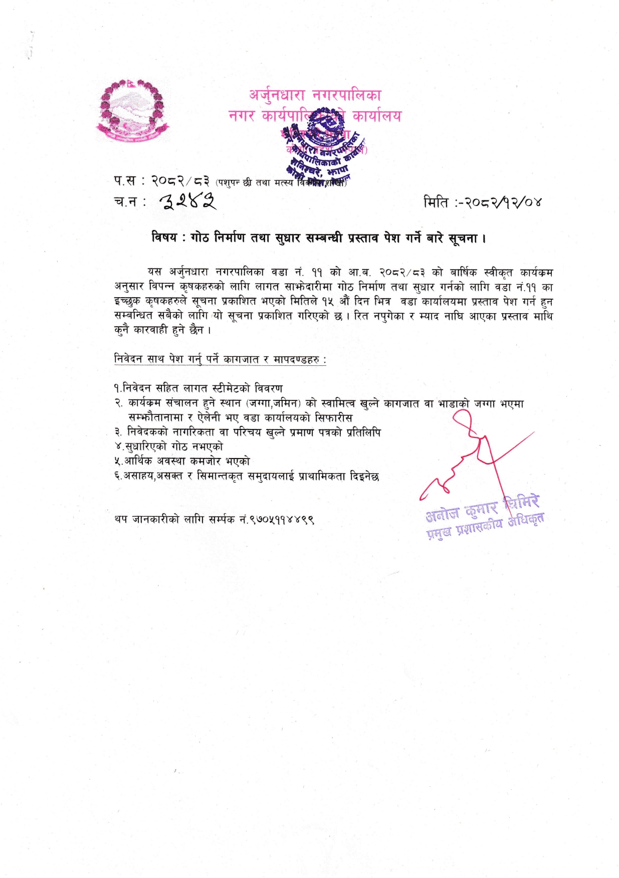 » गोठ निर्माण तथा सुधार सम्बन्धी प्रस्ताव पेश गर्ने बारे सूचना।