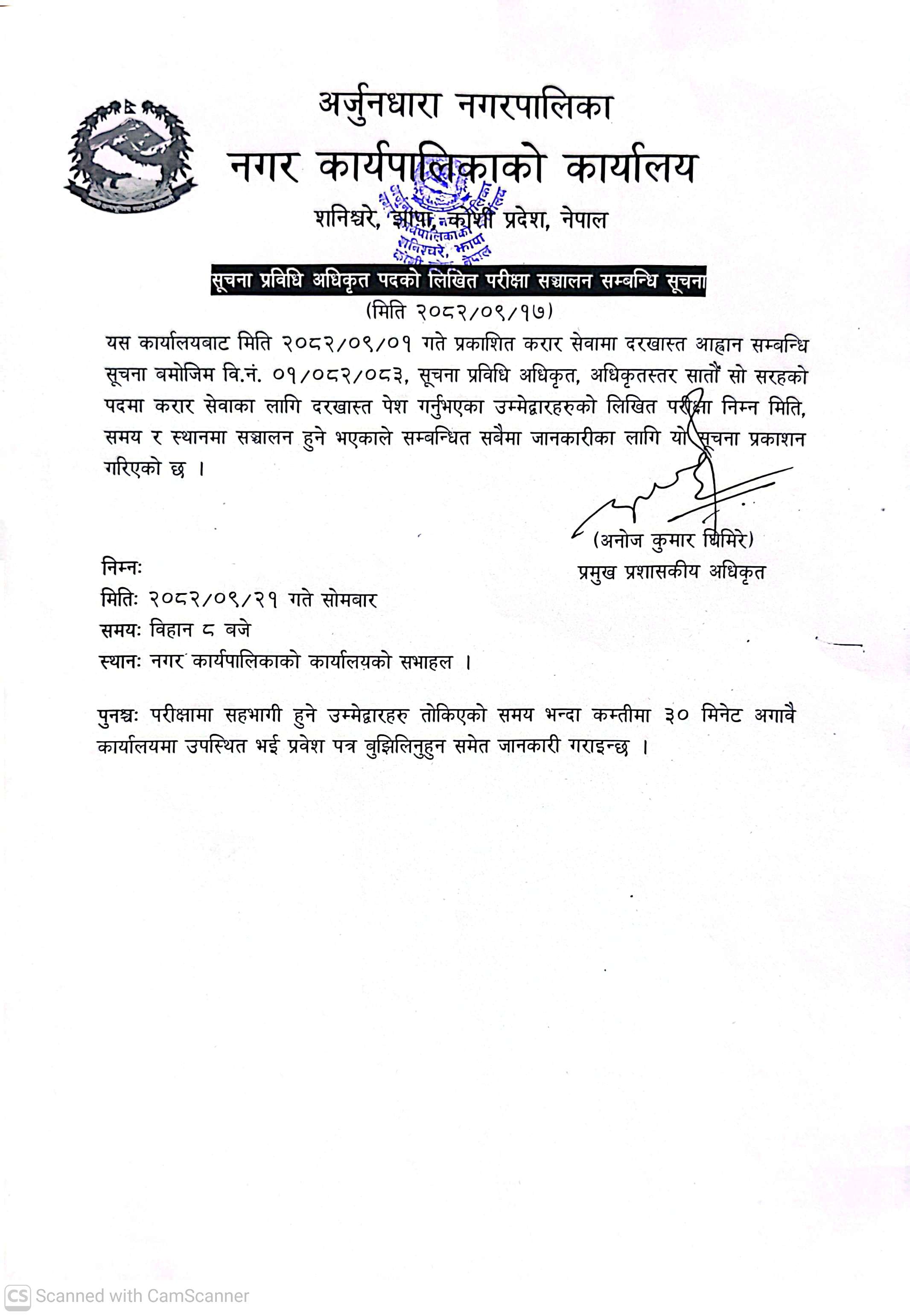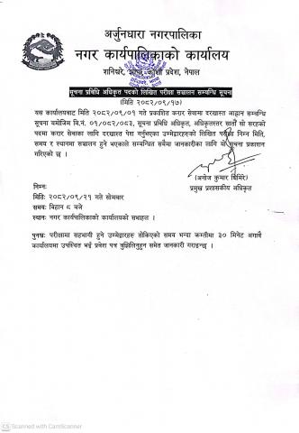अर्जुनधारा नगरपालिकाको सूचना ।