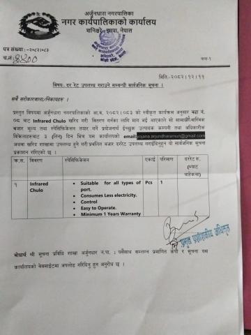 दर रेट उपलब्ध गराउने सम्बन्धी सार्वजनिक सूचना