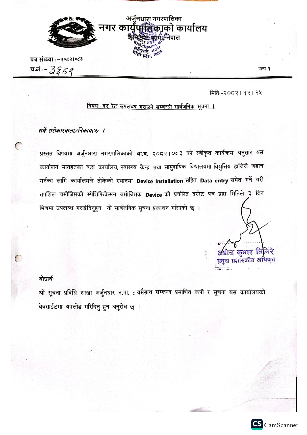 » दर रेट उपलब्ध गराउने सम्बन्धी सार्वजनिक सूचना