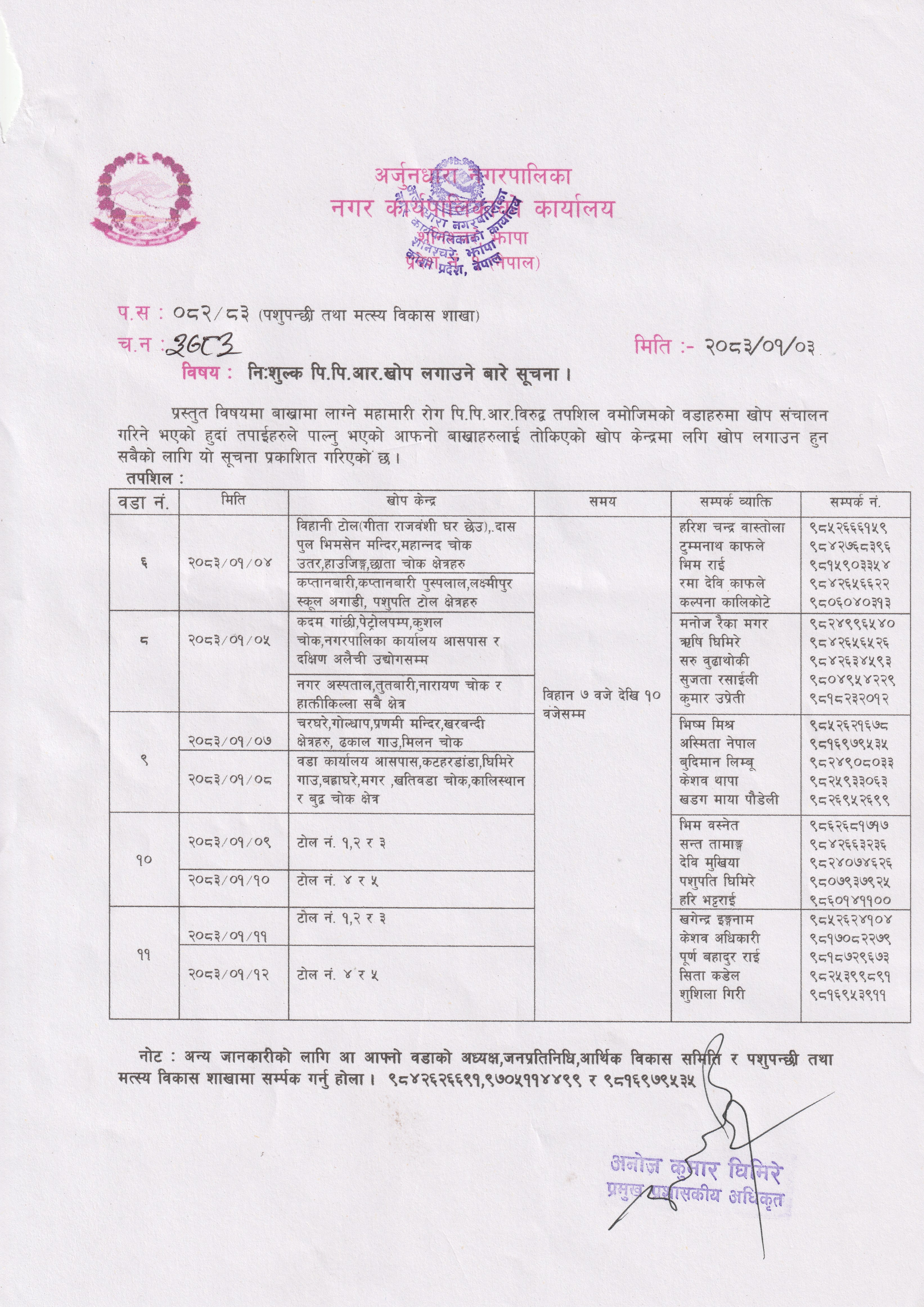 निःशुल्क पि.पि.आर खोप लगाउने बारे सुचना।
